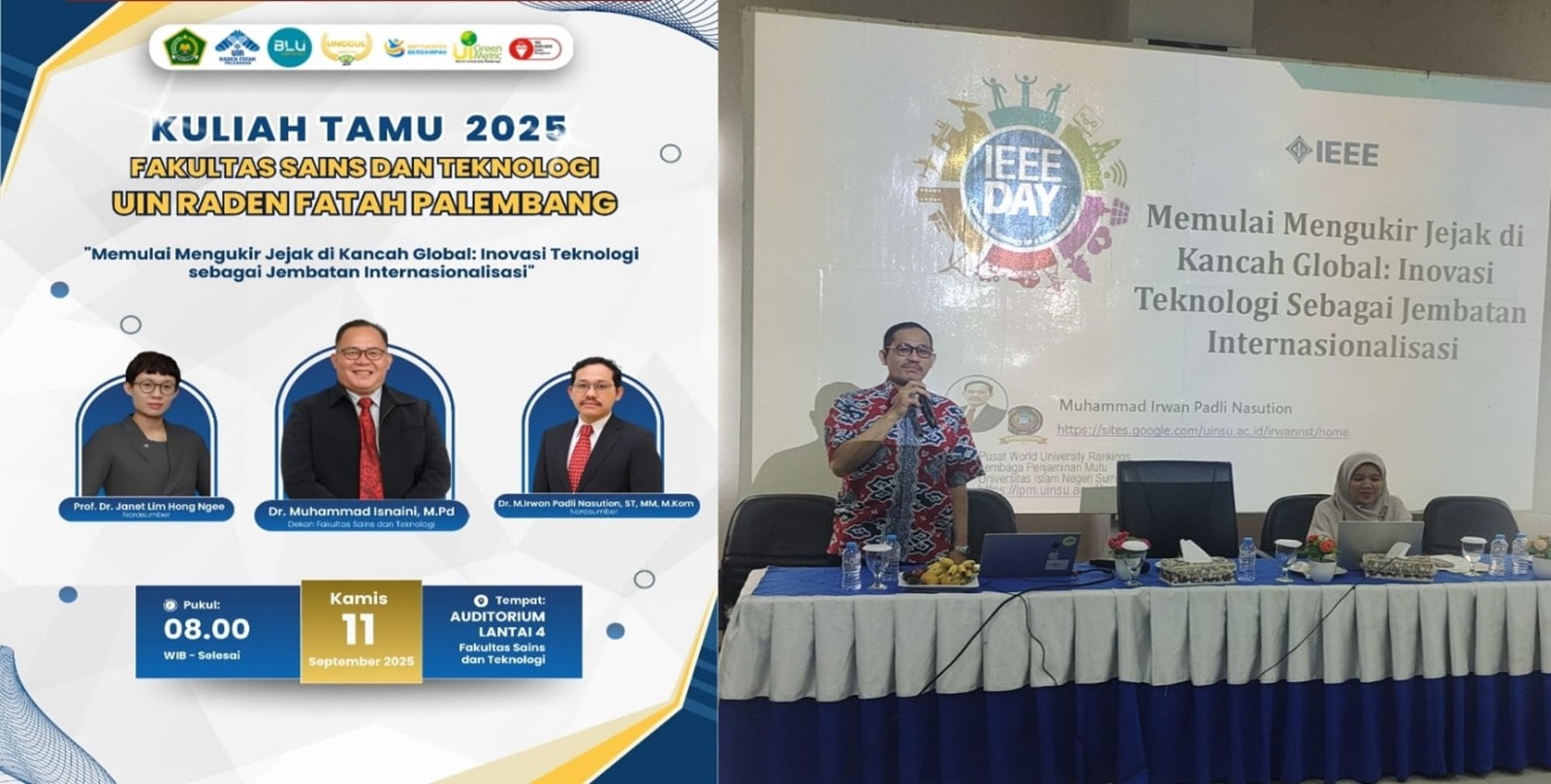 Universitas Islam Negeri Sumatera Utara (UINSU) Medan kembali menorehkan kiprah di kancah akademik nasional dan internasional. Salah satu dosennya, Dr. Muhammad Irwan Padli Nasution, ST, MM, M.Kom, diundang sebagai dosen tamu pada kegiatan kuliah umum di Fakultas Sains dan Teknologi (FST) UIN Raden Fatah Palembang, Kamis, 11 September 2025.