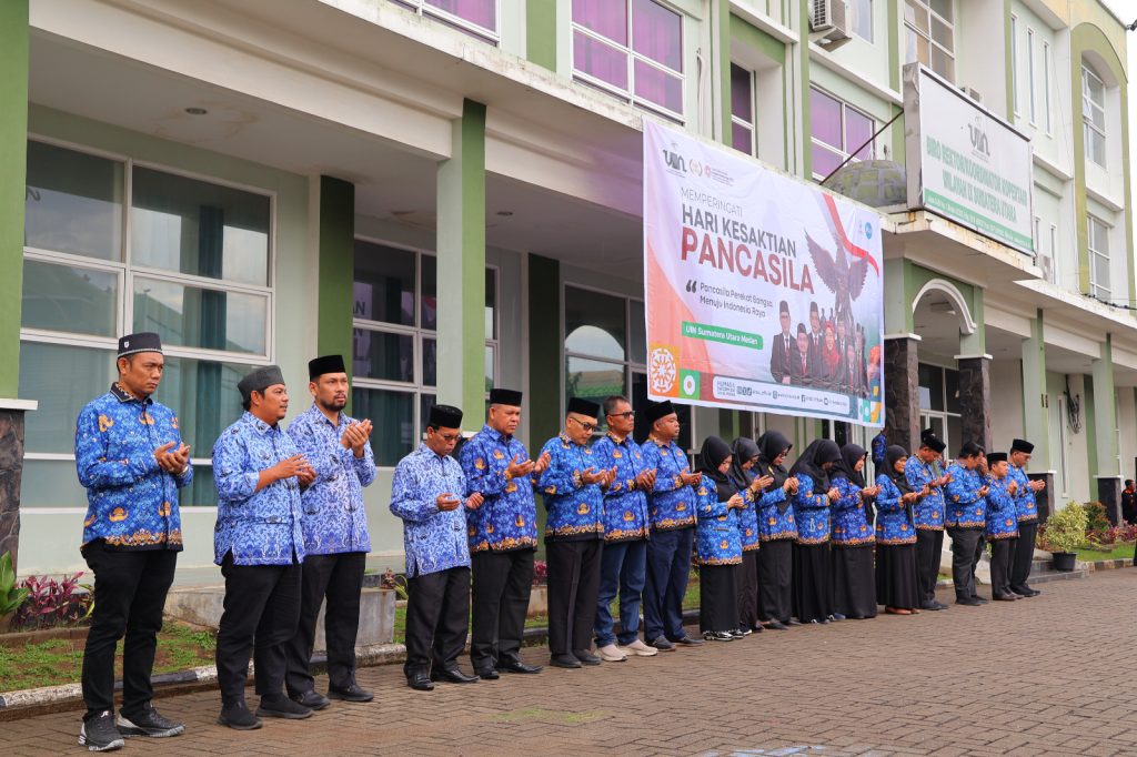 Universitas Islam Negeri Sumatera Utara (UINSU) Medan menggelar upacara peringatan Hari Lahir Pancasila pada Selasa (1/10/2025) di Kampus I Jalan IAIN Medan. Kegiatan berlangsung khidmat dengan diikuti seluruh civitas akademika, mulai dari pimpinan universitas, dosen, dan tenaga kependidikan.