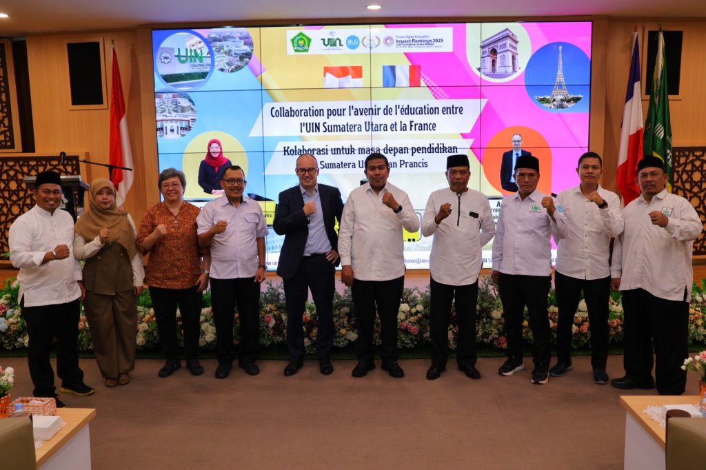 “UINSU yang telah berusia 52 tahun kini memiliki 8 fakultas, dengan kombinasi bidang keagamaan dan umum. Kami sangat terbuka untuk menjalin kolaborasi internasional dalam tridharma perguruan tinggi — baik di bidang pendidikan, riset, maupun mobilitas mahasiswa,” ujarnya. Ia juga menyebut dengan bangga bahwa tiga mahasiswa UINSU saat ini sedang melanjutkan studi magister di Prancis, masing-masing di Université Grenoble Alpes, Université Paris VIII, dan Université de Lorraine, berkat beasiswa dari Pemerintah Prancis.