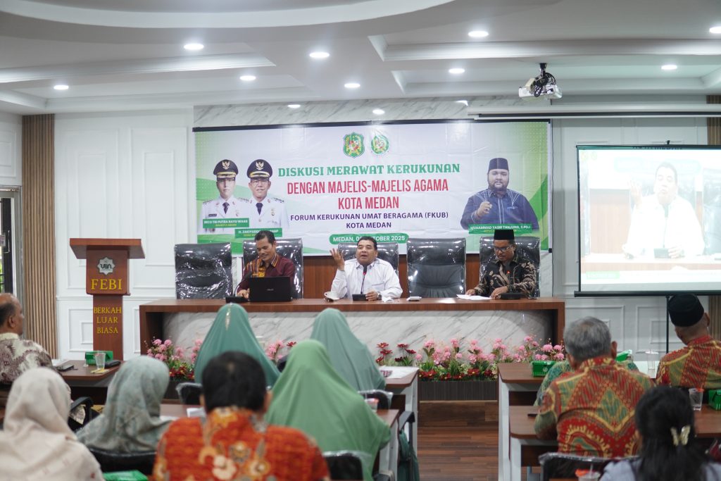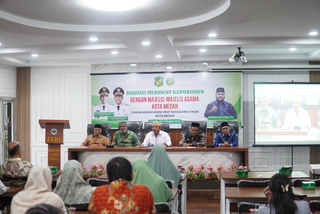 Pernyataan tersebut disampaikan dalam kegiatan Diskusi Merawat Kerukunan dengan Majelis-majelis Agama di Kota Medan yang diselenggarakan oleh Forum Kerukunan Umat Beragama (FKUB) Kota Medan, bertempat di Aula Fakultas Ekonomi dan Bisnis Islam (FEBI) Kampus 1 UINSU, Jalan IAIN Medan, Senin (6/10/2025).