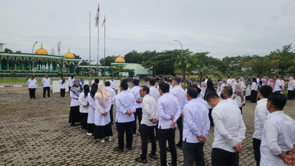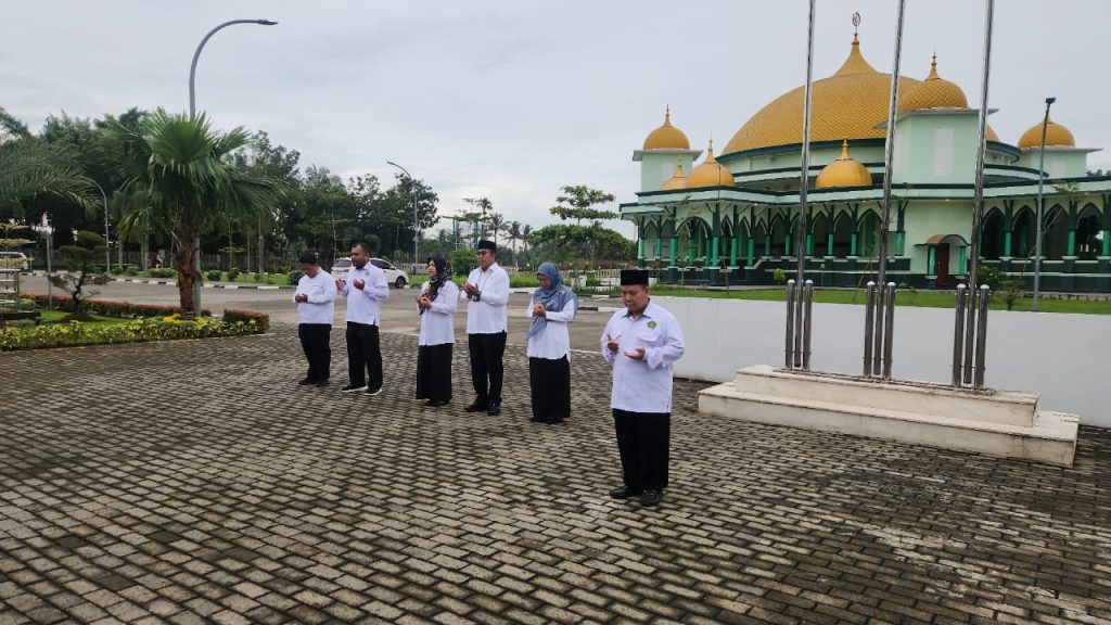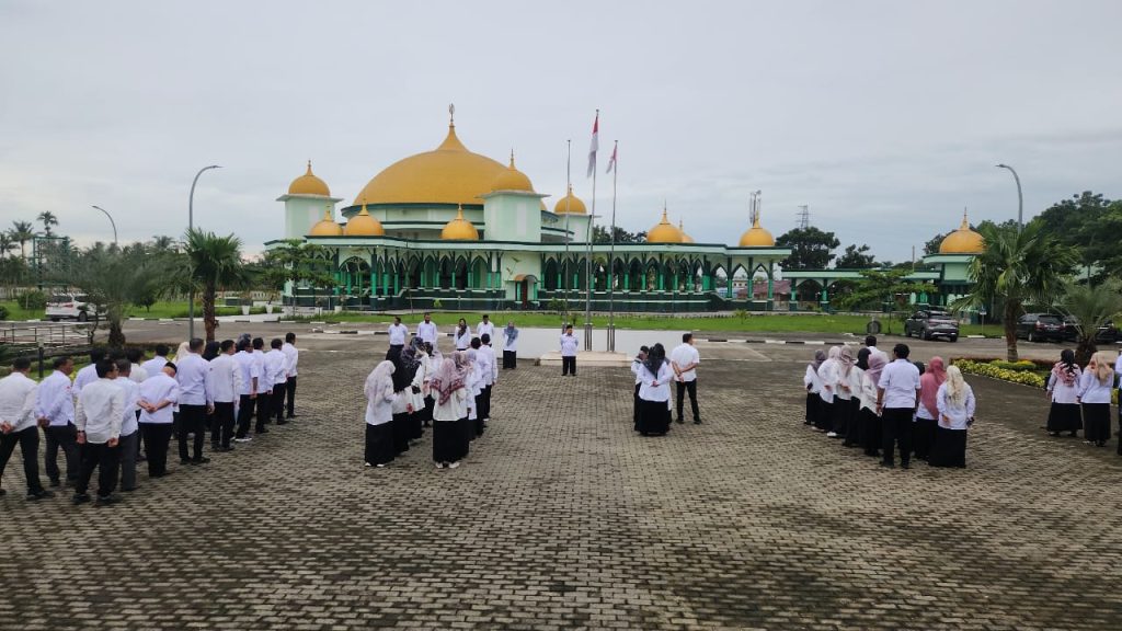 Lebih lanjut, Dr. Abdul Karim menegaskan bahwa apel pagi bukan sekadar kegiatan seremonial, melainkan momentum untuk memperkuat semangat kebersamaan dan motivasi dalam bekerja. Ia berharap kegiatan ini mampu menjadi pemicu bagi seluruh pegawai agar mengawali setiap hari kerja dengan niat yang baik, semangat tinggi, dan doa agar setiap langkah membawa keberkahan. “Apel ini menjadi simbol semangat baru bagi kita semua untuk memulai pekan dengan energi positif dan kerja yang penuh berkah,” tambahnya.