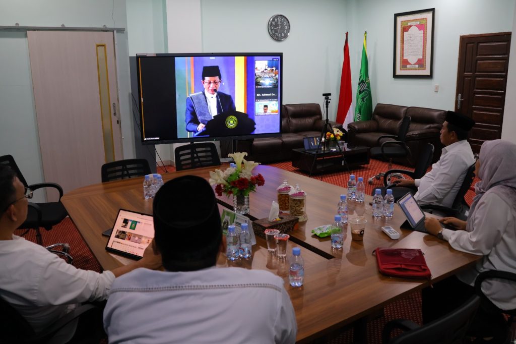Rektor Universitas Islam Negeri Sumatera Utara (UINSU) Medan, Prof. Dr. Nurhayati, M.Ag. bersama jajaran pimpinan universitas turut serta mengikuti kegiatan ini secara daring melalui Zoom Meeting, sesuai dengan undangan resmi yang dikeluarkan oleh Direktorat Jenderal Pendidikan Islam Kemenag RI. Kehadiran pimpinan UINSU dalam kegiatan Doa Santri untuk Negeri menjadi bentuk dukungan nyata terhadap semangat kebersamaan dan kekhidmatan doa yang digelorakan oleh santri di seluruh tanah air demi keselamatan bangsa, persatuan umat, serta penghormatan bagi para santri yang wafat dalam musibah di Pondok Pesantren Al Khazini, Sidoarjo.