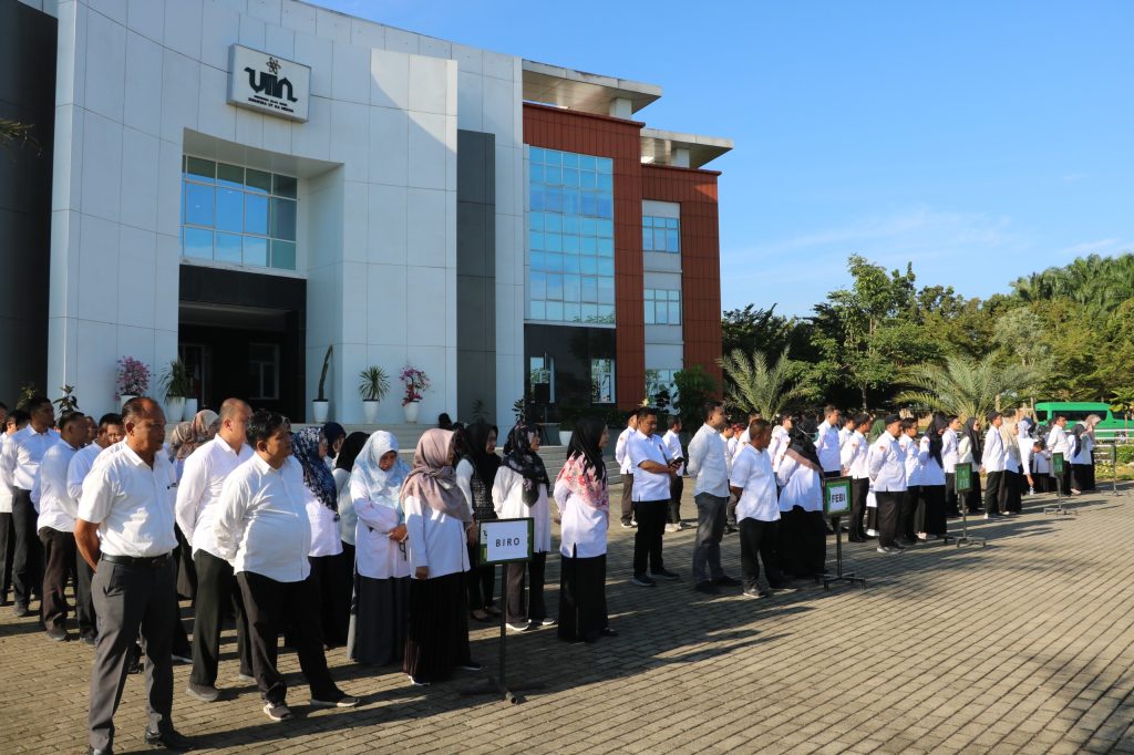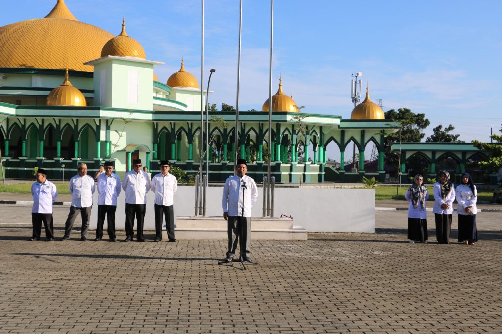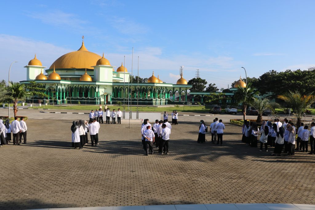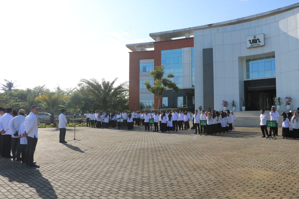 Senin, 27 Oktober 2025 — Universitas Islam Negeri Sumatera Utara (UINSU) Medan menggelar apel pagi di Halaman Gedung Biro Rektor Kampus IV pada Senin (27/10). Kegiatan rutin tersebut dipimpin oleh Wakil Rektor Bidang Kemahasiswaan Prof. Dr. Katimin, M.A., yang bertindak sebagai pembina apel. Dalam amanatnya, beliau menekankan pentingnya keikhlasan, kedisiplinan, dan sikap arif dalam bekerja serta melayani mahasiswa.