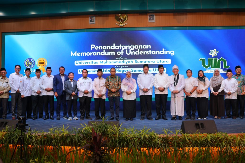 Acara diawali dengan pembukaan oleh MC, pembacaan ayat suci Al-Qur’an, dan penampilan tarian sambutan dari mahasiswa UMSU yang memeriahkan suasana. Setelah itu, dilaksanakan prosesi penandatanganan MoU dan pertukaran cenderamata dari masing-masing universitas, diikuti dengan sesi foto bersama dan sambutan dari kedua rektor.