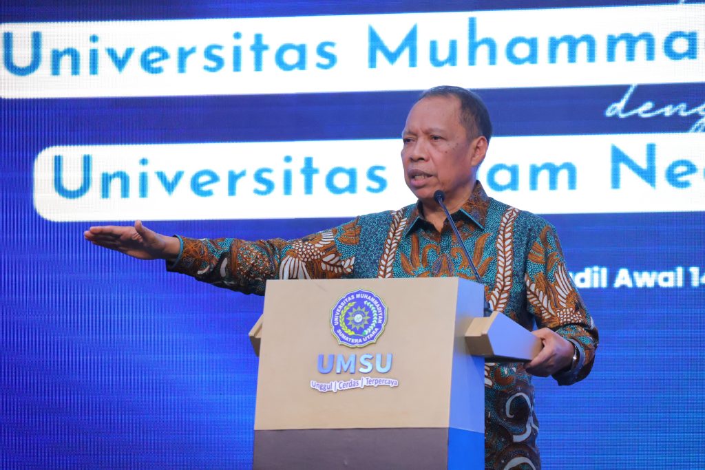 Ia juga menyoroti pentingnya membangun ekosistem pendidikan yang berdampak nyata bagi masyarakat. UMSU, lanjutnya, terus mengembangkan diri sebagai kampus riset dan inovasi, dengan lebih dari 20 ribu mahasiswa aktif dan berbagai program unggulan termasuk Fakultas Kedokteran yang telah membuka program spesialisasi. “Kami siap berbagi pengalaman dan mendukung langkah UINSU dalam mengembangkan Fakultas Kedokteran. Kolaborasi ini bukan hanya di atas kertas, tetapi harus diwujudkan dalam program nyata,” tegasnya.