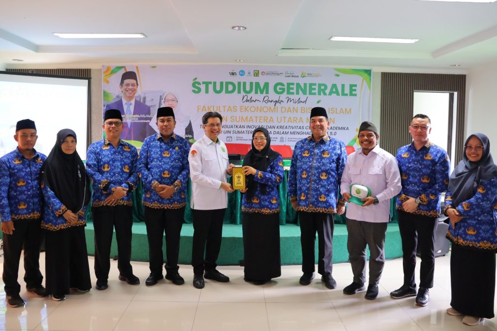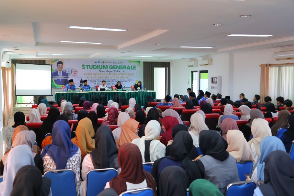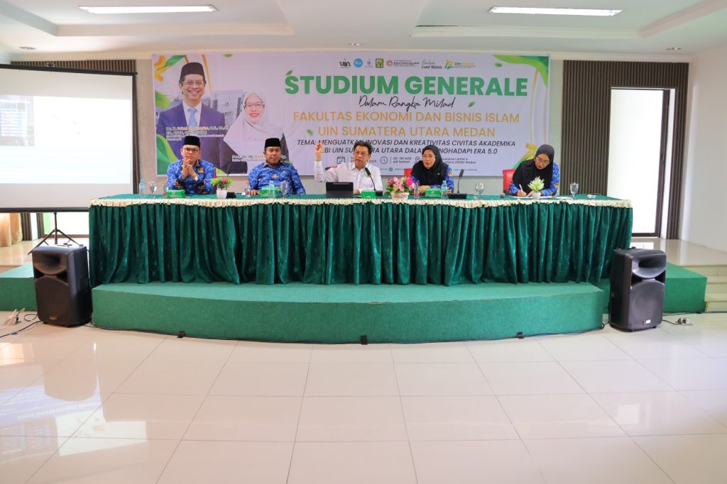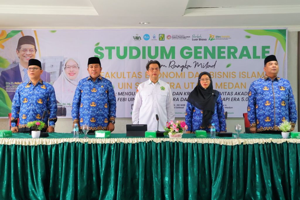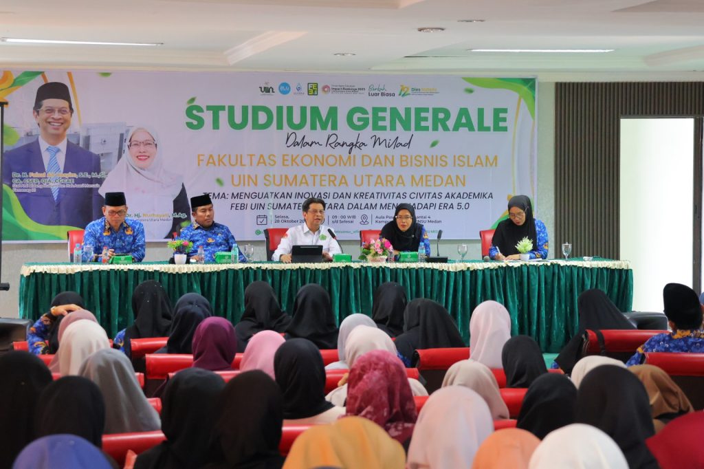 Selasa, 28 Oktober 2025 — Dalam rangka Milad ke-12 Fakultas Ekonomi dan Bisnis Islam (FEBI), Universitas Islam Negeri Sumatera Utara (UINSU) Medan menyelenggarakan Studium Generale bertema “Menguatkan Inovasi dan Kreativitas Civitas Akademika FEBI UIN Sumatera Utara dalam Menghadapi Era 5.0”. Acara berlangsung di Aula Lantai 4 Gedung Pascasarjana, Kampus I UINSU Jalan Sutomo Ujung Medan, Selasa (28/10).