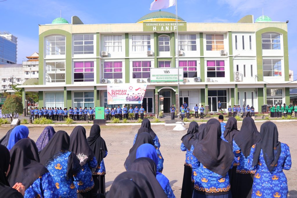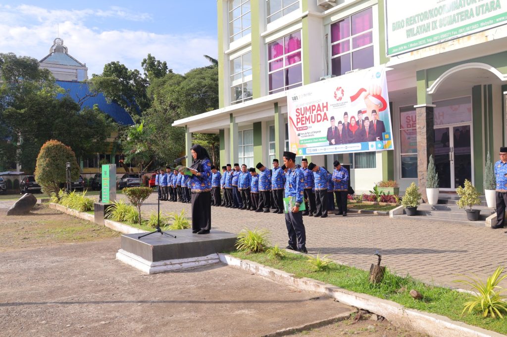 Lapangan Kampus I Universitas Islam Negeri Sumatera Utara (UINSU) Medan menjadi saksi pelaksanaan upacara Peringatan Hari Sumpah Pemuda ke-97, Selasa (28/10/2025). Upacara yang berlangsung khidmat itu diikuti oleh seluruh Aparatur Sipil Negara (ASN) dan pegawai Badan Layanan Umum (BLU) UINSU. Bertindak sebagai Pembina Upacara, Rektor UINSU Medan, Prof. Dr. Nurhayati, M.Ag., yang dalam kesempatan tersebut membacakan amanat Menteri Pemuda dan Olahraga Republik Indonesia, Erick Thohir.