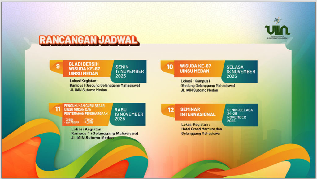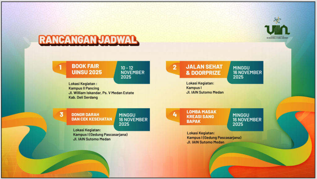 Suasana kebersamaan dan semangat kebanggaan civitas akademika Universitas Islam Negeri Sumatera Utara (UINSU) Medan tampak begitu kuat dalam rangkaian kegiatan Dies Natalis ke-52 yang diselenggarakan tahun 2025 ini. Berbagai kegiatan digelar dengan meriah, melibatkan dosen, tenaga kependidikan (tendik), mahasiswa, hingga alumni, yang bersama-sama menunjukkan semangat kolaborasi dan kepedulian sosial.