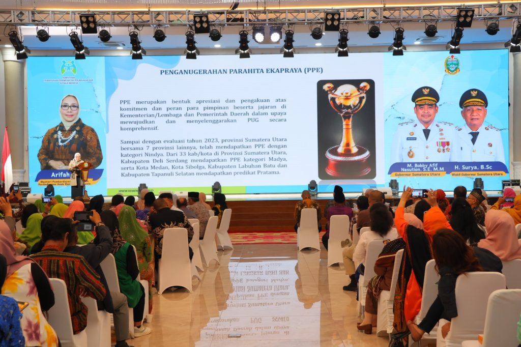 Dalam sambutan tertulis Gubernur Sumatera Utara yang dibacakan Wakil Gubernur H. Surya, B.Sc., disebutkan bahwa Sumatera Utara memiliki jumlah penduduk sekitar 15,6 juta jiwa, di mana 49,95% adalah perempuan. Besarnya populasi perempuan menjadi potensi sekaligus tantangan dalam pembangunan daerah.