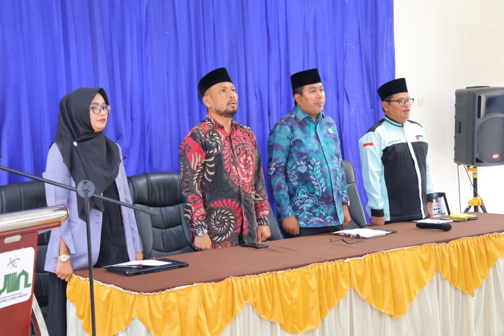 Acara dibuka secara resmi oleh Wakil Rektor Bidang Kerjasama dan Pengembangan Lembaga UINSU, Prof. Dr. H. Muzakkir, M.Ag., yang hadir mewakili Rektor. Turut hadir pula sejumlah dekan dan wakil dekan dari berbagai fakultas, Kepala Pusat Pengembangan Bahasa (PUSPESA) Prof. Dr. Watni Marpaung, MA., Kepala Bagian Akademik dan Kemahasiswaan Yunni Salma, S.Ag., MM., Kepala Pusat Admisi dan Promosi Raissa Amanda Putri, S.Kom., M.TI., serta staf biro rektor lainnya.