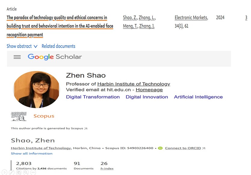 Shao, Z., Zhang, L.*, Meng, T., & Zhang, J. (2024). The paradox of technology quality and ethical concerns in building trust and behavioral intention in the AI-enabled face recognition payment. Electronic Markets, 34(1), 1–20,
