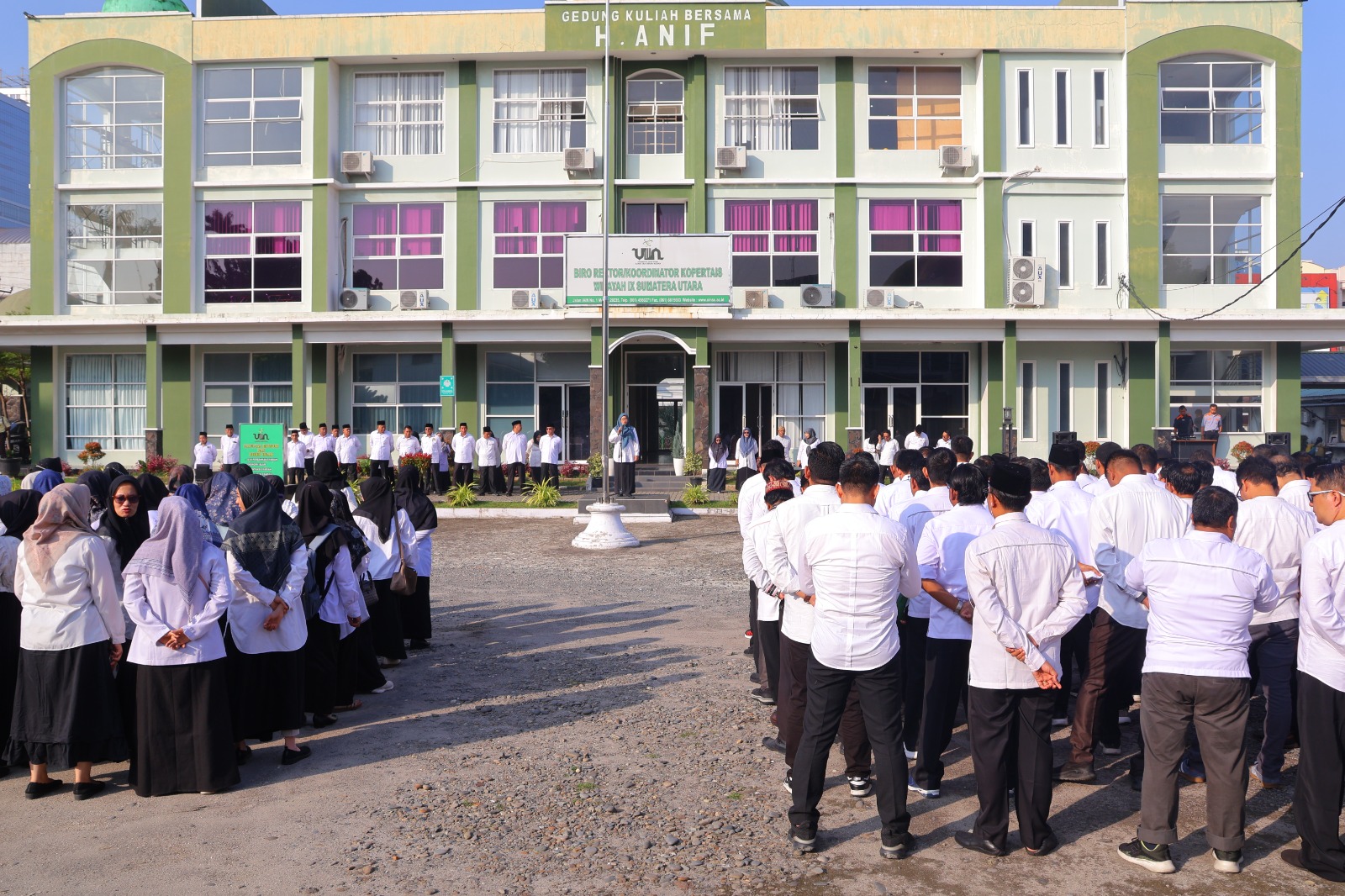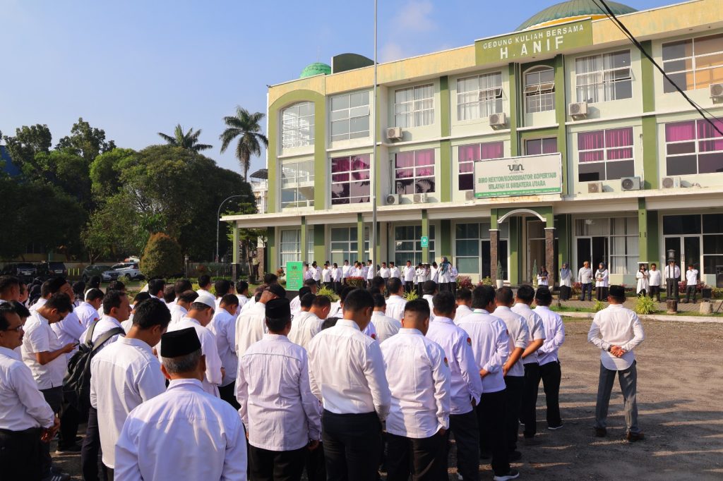 Universitas Islam Negeri Sumatera Utara (UINSU) Medan melaksanakan apel pagi rutin pada Senin, 1 Desember 2025, di halaman Gedung H. Anif Kampus I UINSU Medan. Kegiatan ini diikuti oleh seluruh ASN dan pegawai non-ASN sebagai bagian dari pembinaan disiplin serta peneguhan semangat kebersamaan di lingkungan kampus.