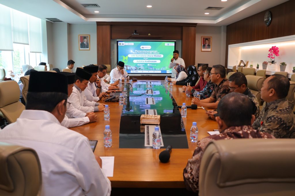 Universitas Islam Negeri Sumatera Utara (UINSU) Medan menandatangani Nota Kesepahaman (Memorandum of Understanding/MoU) dengan Bimbingan Belajar (Bimbel) Adzkia Kedinasan Medan pada Senin (22/12/2025) bertempat di Ruang Rapat Biro Rektor Kampus IV UINSU. Penandatanganan ini menandai langkah strategis kedua lembaga dalam memperkuat kerja sama di bidang pendidikan, pelatihan, dan pengabdian kepada masyarakat, khususnya dalam peningkatan kesiapan mahasiswa menghadapi seleksi kedinasan dan dunia kerja.