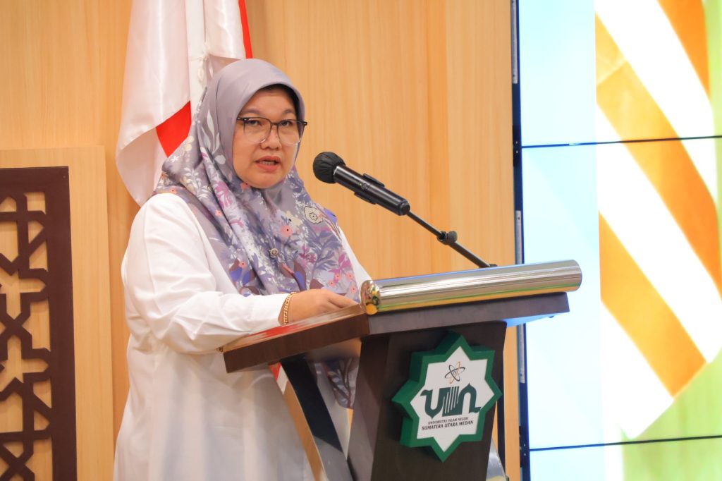 Dalam sambutan penuh semangatnya, Rektor Prof. Dr. Nurhayati, M.Ag. mengucapkan selamat kepada para penerima penghargaan dan menegaskan pentingnya sinergi antarunit di lingkungan kampus. Beliau juga memuji kerja keras tim LPM dan para pimpinan fakultas yang berhasil membawa UINSU ke arah peningkatan mutu yang nyata. “Alhamdulillah, akreditasi kita yang dulu hanya tujuh kini meningkat menjadi dua puluh delapan, dan kita berharap ke depan semakin banyak prodi yang meraih predikat unggul,” ujarnya disambut tepuk tangan meriah.