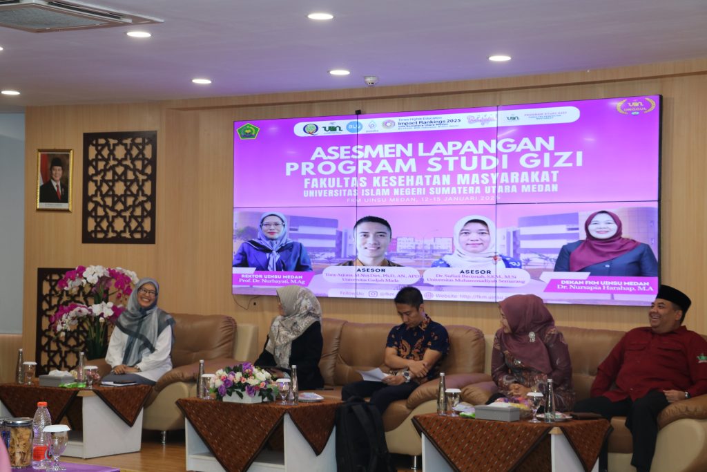 Universitas Islam Negeri Sumatera Utara (UINSU) Medan resmi menggelar asesmen lapangan untuk Program Studi Gizi, Fakultas Kesehatan Masyarakat, pada 12–15 Januari 2026. Acara yang berlangsung di kampus Tuntungan ini dihadiri lansung oleh Rektor dan jajaran pimpinan universitas seperti para wakil rektor, para kepala biro, para dekan fakultas, serta tim asesor dari Lembaga Akreditasi Mandiri Pendidikan Tinggi Kesehatan (LAM-PTKes), yakni Tony Arjuna, M.Nut. Diet., Ph.D., AN., APD. dari Universitas Gadjah Mada dan Dr. Sufiati Bintanah, S.K.M., M.Si dari Universitas Muhammadiyah Semarang.