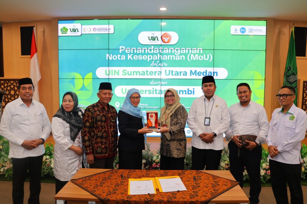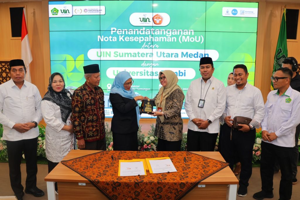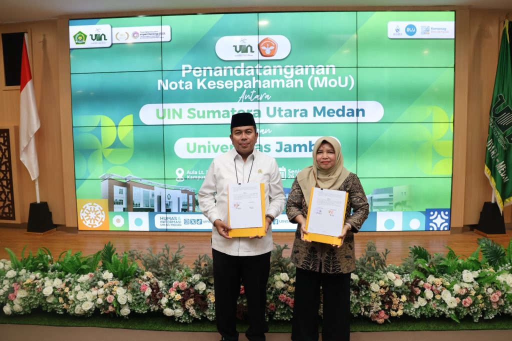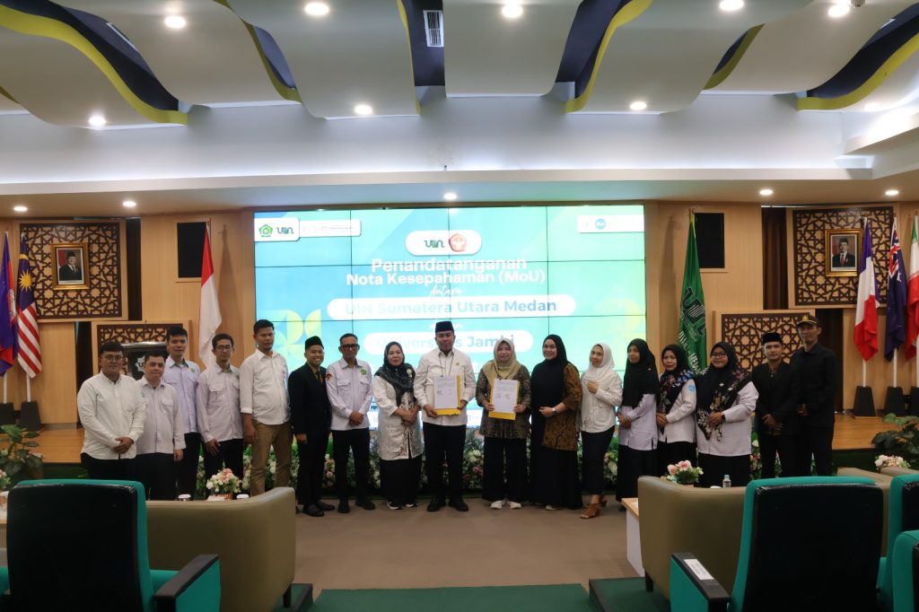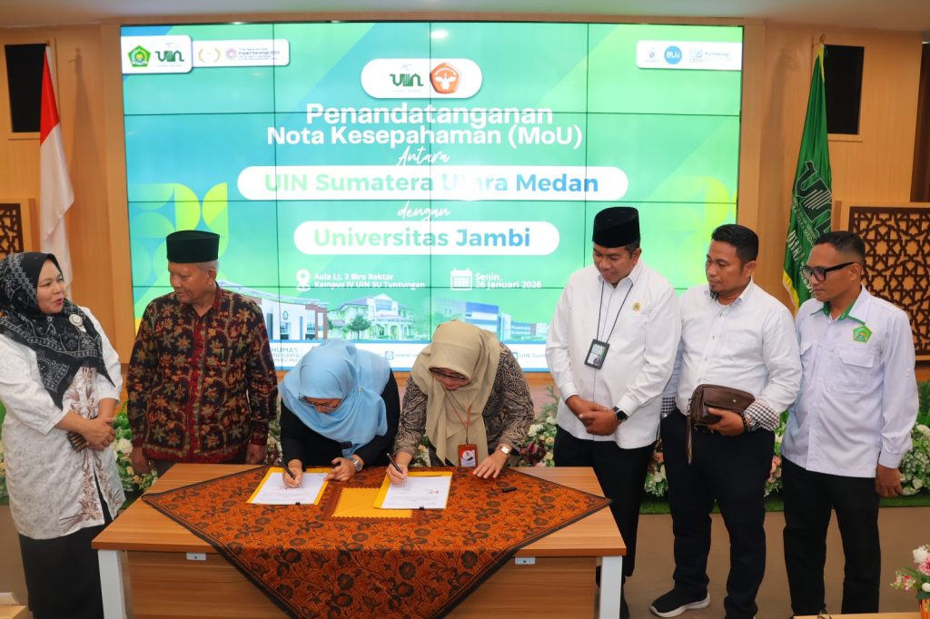 Momentum bersejarah kembali tercipta di Aula Biro Rektor Kampus IV UIN Sumatera Utara (UINSU) Medan pada Senin, 26 Januari 2026. Segera setelah agenda kunjungan Ketua MPR RI usai, atmosfer kolaborasi semakin mengental dengan dilaksanakannya prosesi penandatanganan Nota Kesepahaman (MoU) antara UINSU Medan dengan Universitas Jambi (UNJA). Langkah ini menandai babak baru bagi kedua institusi dalam memperkuat kualitas pendidikan tinggi di Sumatera melalui sinergi yang komprehensif.