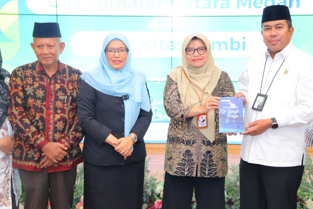 Hadir langsung dalam prosesi ini Rektor UINSU Medan, Prof. Dr. Nurhayati, M.Ag., yang didampingi oleh jajaran pimpinan universitas, di antaranya Ketua Senat Prof. Dr. Pagar, M.Ag., Wakil Rektor Bidang Kerja Sama dan Pengembangan Lembaga Prof. Dr. Muzakkir, M.Ag., serta Kepala Biro AAKK Dr. Tohar Bayoangin, M.Ag. Dari pihak Universitas Jambi, hadir mewakili Rektor UNJA yaitu Wakil Rektor Bidang Kerja Sama, Hubungan Masyarakat, dan Sistem Informasi, Prof. Dr. Revis Asra, S.Si., M.Si., yang hadir didampingi oleh staf ahli guna memperkuat ikatan kemitraan antar-provinsi ini.