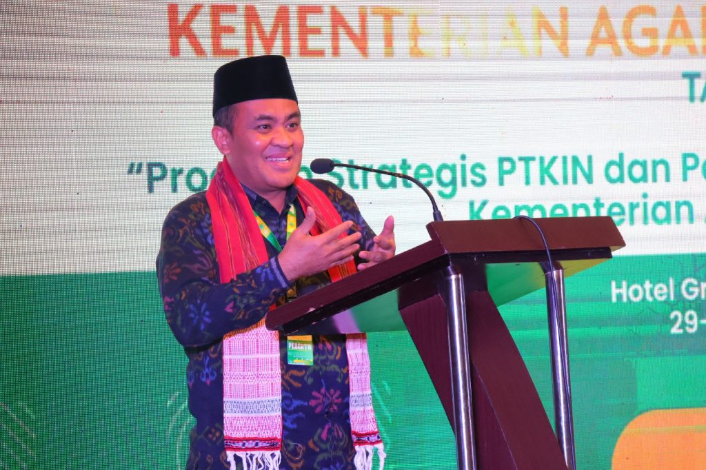 Direktur Pendidikan Tinggi Keagamaan Islam (PTKI), Prof. Dr. Phil. Sahiron, M.A., dalam sambutannya menyoroti pentingnya transformasi PTKIN yang berbasis pada mutu dan relevansi. Ia menekankan bahwa PTKIN harus mampu mengembangkan keilmuan Islam yang integratif, terbuka terhadap perkembangan ilmu pengetahuan, serta responsif terhadap kebutuhan masyarakat dan dunia kerja.