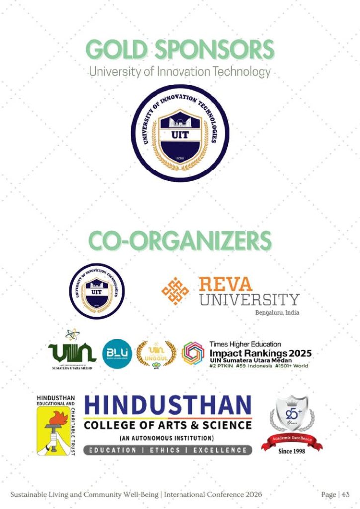 UINSU Medan, ditetapkan sebagai Co-Organizer dalam kegiatan tersebut. Pengakuan ini ditandai dengan pencantuman logo resmi UINSU pada berbagai media kegiatan, termasuk pada booklet, flyers, sertifikat dan laman resmi konferensi internasional SustainWell 2026. (https://inticonferences.newinti.edu.my/conferences-2026/sustainwell2026 )