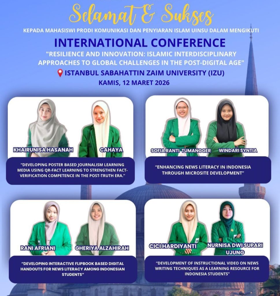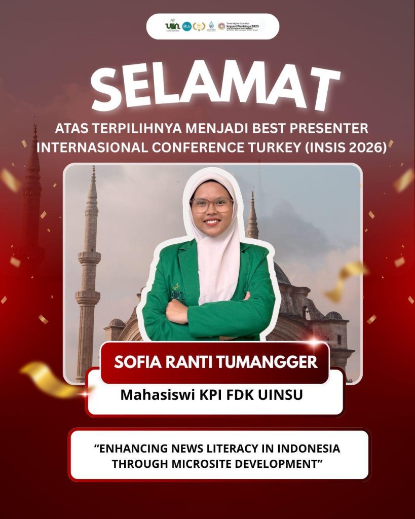 Mahasiswi Universitas Islam Negeri Sumatera Utara Medan (UIN Sumatera Utara Medan) kembali menorehkan prestasi di kancah internasional melalui partisipasi aktif dalam International Seminar of Islamic Studies (INSIS) 8th 2026 yang diselenggarakan pada Kamis, 12 Maret 2026. Kegiatan bergengsi ini diinisiasi oleh Fakultas Agama Islam Universitas Muhammadiyah Sumatera Utara dan dilaksanakan secara hybrid, dengan pusat kegiatan luring di Istanbul Sabahattin Zaim University (ISZU), Turki.