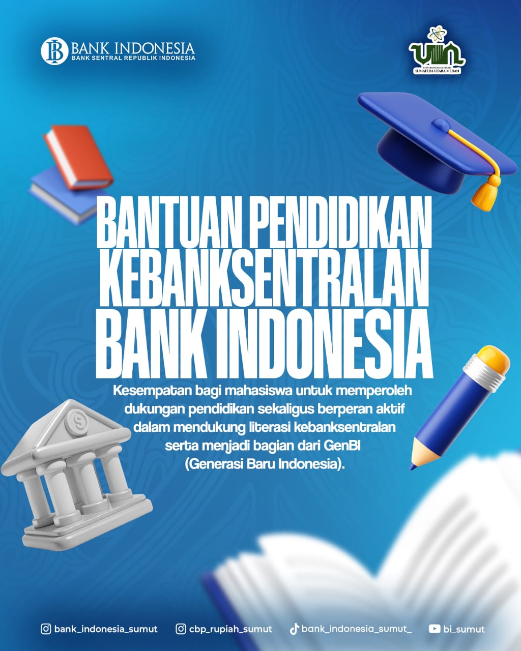 Bank Indonesia kembali membuka program Bantuan Pendidikan Kebanksentralan bagi mahasiswa di berbagai perguruan tinggi, termasuk Universitas Islam Negeri Sumatera Utara (UINSU) Medan. Program ini tidak hanya memberikan dukungan finansial, tetapi juga membuka kesempatan bagi mahasiswa untuk menjadi bagian dari Generasi Baru Indonesia (GenBI).
