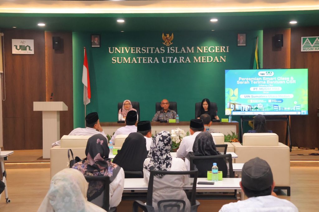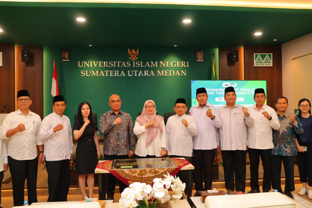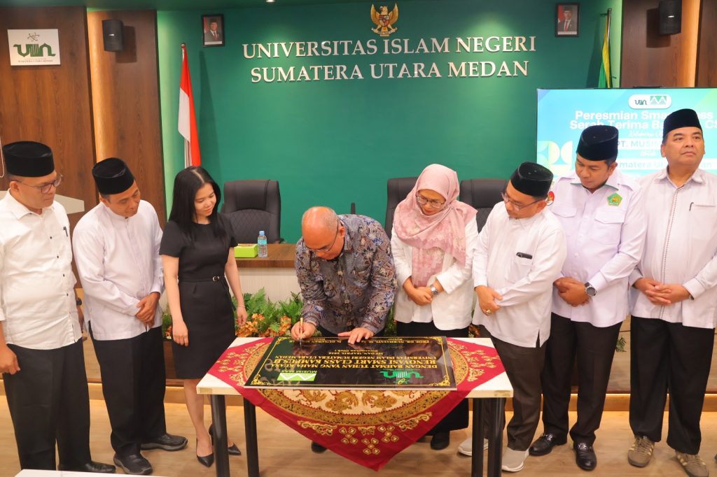 Langkah besar menuju modernisasi pendidikan digital kembali ditorehkan oleh Universitas Islam Negeri (UIN) Sumatera Utara Medan. Pada Senin, 13 April 2026, bertempat di Gedung Biro Rektor Kampus II Jalan Willem Iskandar, dilakukan prosesi peresmian dan serah terima bantuan hibah Corporate Social Responsibility (CSR) berupa Smart Class dari PT Musim Mas kepada UINSU Medan. Fasilitas mutakhir ini diresmikan langsung melalui pemotongan pita dan penandatanganan berita acara serah terima oleh Direktur Utama PT Musim Mas, Ir. Gunawan Siregar, bersama Rektor UINSU, Prof. Dr. Nurhayati, M.Ag. Kehadiran ruang kelas pintar ini menjadi simbol kolaborasi strategis antara dunia industri dan akademisi dalam mempercepat terciptanya ekosistem kampus yang cerdas dan inovatif.