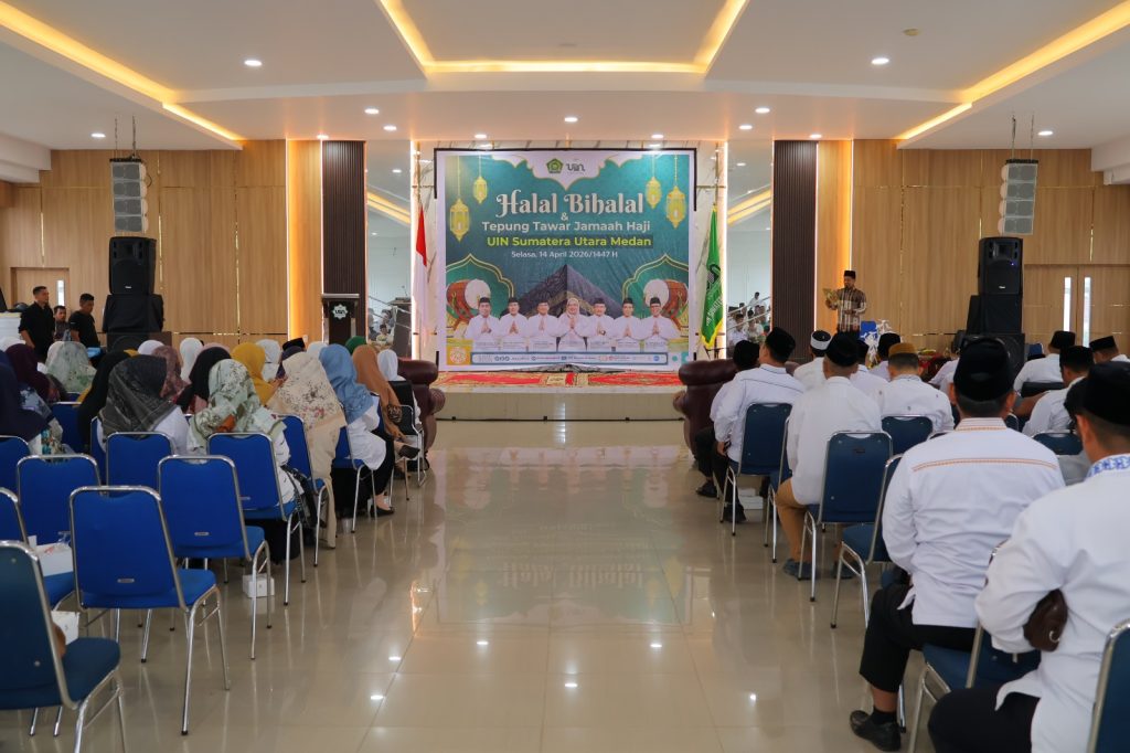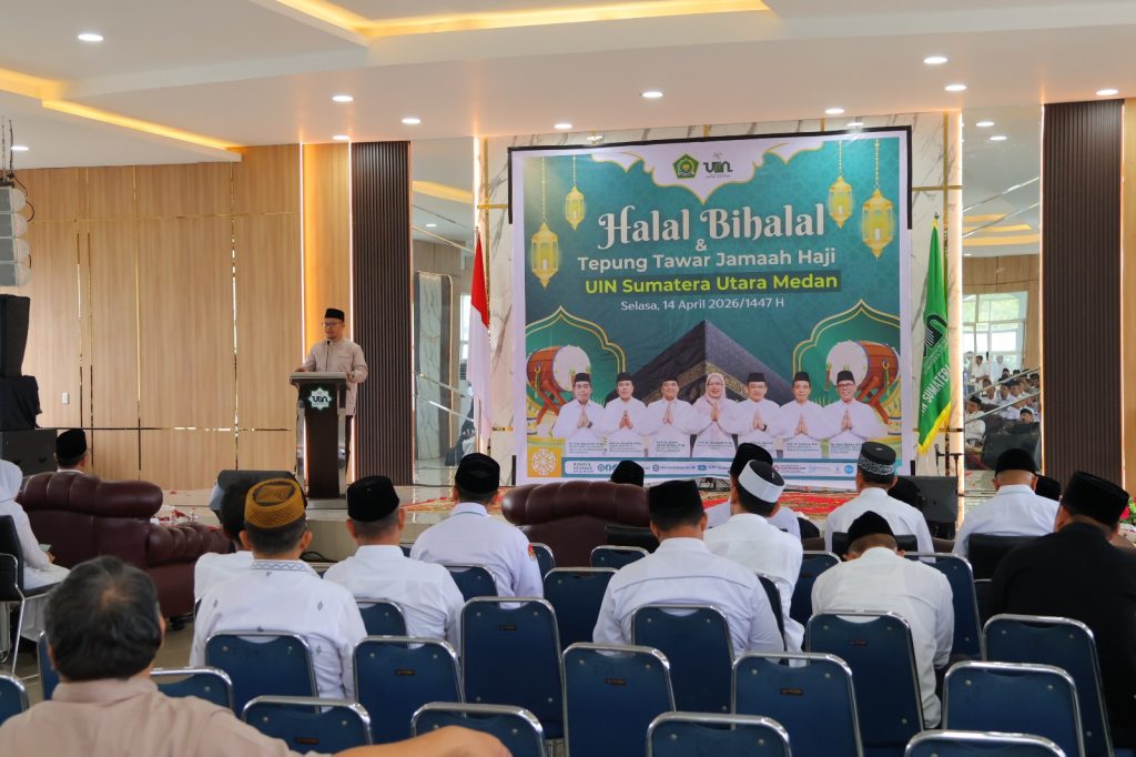 Keluarga besar Universitas Islam Negeri (UIN) Sumatera Utara Medan menggelar agenda ganda yang penuh makna di Aula Lt. 3 Gedung H. Anif, Kampus I UINSU, Jalan IAIN No. 1 Medan, pada Selasa, 14 April 2026. Acara yang memadukan tradisi Halalbihalal 1447 H dengan upacara adat Tepung Tawar bagi para pegawai yang akan berangkat menunaikan ibadah haji ini berlangsung dengan suasana penuh keakraban dan haru. Kehadiran para pimpinan universitas, dosen, serta tenaga kependidikan dari lingkungan ASN maupun BLU menjadi bukti kuatnya tali silaturahmi yang terus dipupuk di bawah kepemimpinan Rektor UINSU, Prof. Dr. Nurhayati, M.Ag. Agenda ini bukan sekadar rutinitas tahunan, melainkan momentum penting untuk saling memaafkan sekaligus memberikan dukungan moral bagi rekan sejawat yang akan melaksanakan rukun Islam kelima ke tanah suci.