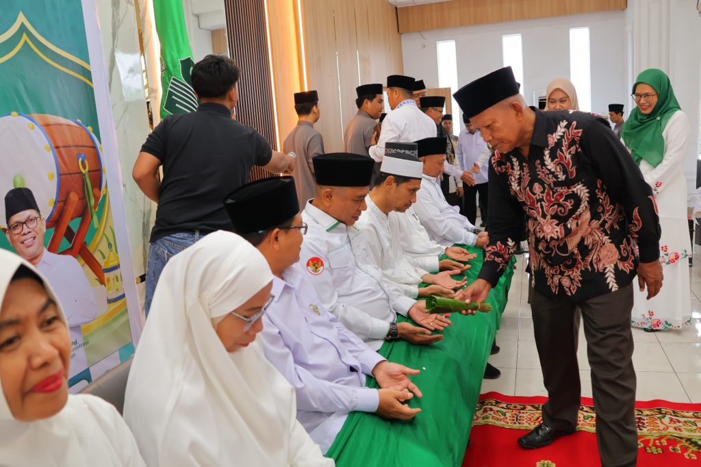 Rektor UINSU Medan, Prof. Dr. Nurhayati, M.Ag., dalam sambutannya menyampaikan rasa syukur dan apresiasi yang mendalam atas terselenggaranya acara ini sebagai wadah mempererat ukhuwah Islamiyah di lingkungan kampus. Beliau menekankan bahwa semangat Halalbihalal harus menjadi fondasi bagi seluruh sivitas akademika untuk bekerja lebih harmonis demi mewujudkan visi Smart Islamic University. Kepada para calon jemaah haji, Rektor menitipkan doa agar perjalanan ibadah mereka diberikan kemudahan, kesehatan, serta keselamatan hingga kembali ke tanah air dengan predikat haji yang mabrur dan mabruroh. “Haji yang mabrur itu tercermin dari perubahan perilaku yang semakin baik dan kepedulian sosial yang meningkat setelah pulang nanti,” pesan Prof. Nurhayati kepada para hadirin.