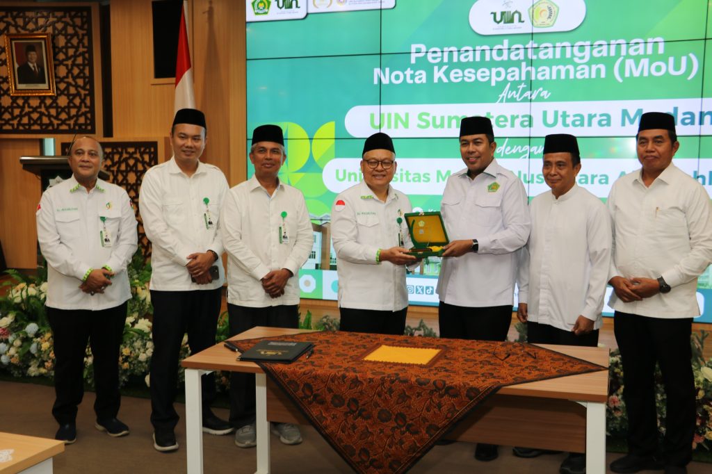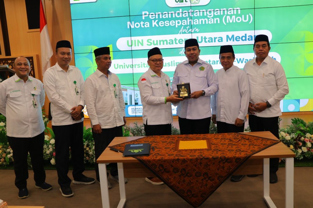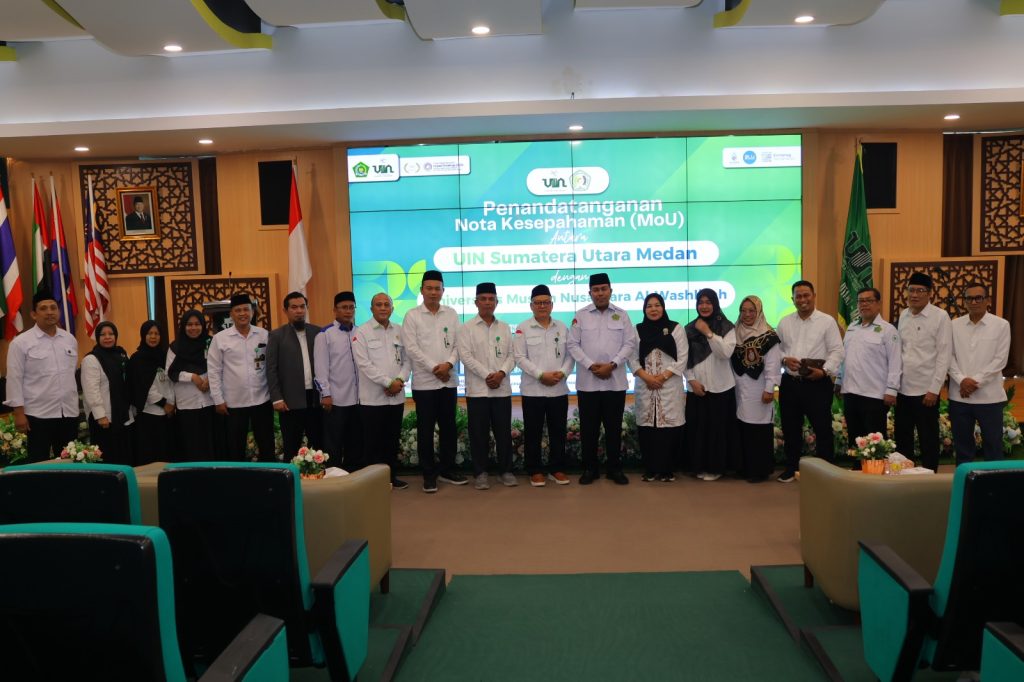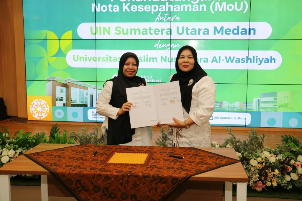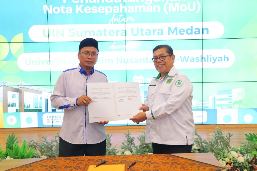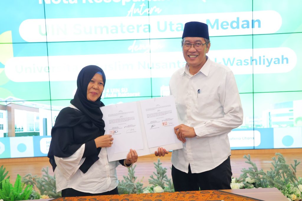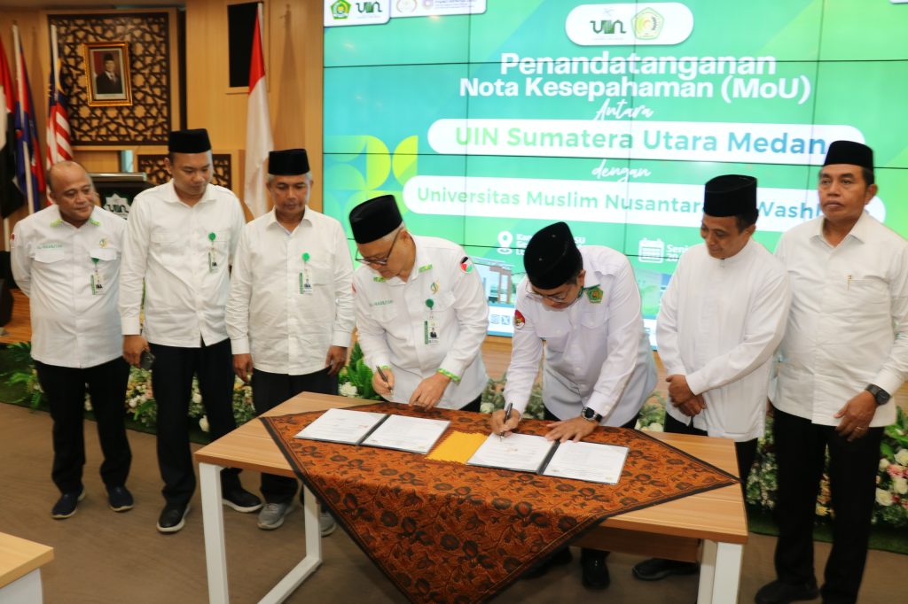 Universitas Islam Negeri (UIN) Sumatera Utara Medan dan Universitas Muslim Nusantara (UMN) Al-Washliyah resmi memperkuat ikatan institusional melalui penandatanganan perpanjangan Nota Kesepahaman (MoU) yang berlangsung khidmat di Aula Rektorat Kampus IV UINSU, Medan, Senin (20/4). Acara ini menandai babak baru kolaborasi kedua instansi yang secara emosional telah lama terjalin erat, mengingat banyaknya irisan sejarah dan sumber daya manusia di antara keduanya. Mewakili Rektor UINSU, Prof. Dr. Nurhayati, M.Ag., Wakil Rektor Bidang Kerja Sama dan Pengembangan Lembaga, Prof. Dr. Muzakkir, M.Ag., dalam sambutannya menekankan bahwa MoU ini bukan sekadar seremonial di atas kertas, melainkan sebuah komitmen untuk menghadirkan kerja sama yang produktif dan berdampak nyata bagi masyarakat akademik di Sumatera Utara.