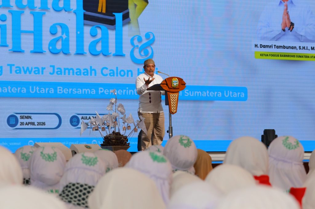 Kehadiran Universitas Islam Negeri Sumatera Utara (UINSU) Medan turut memberi warna dan penguatan spiritual dalam acara Halalbihalal dan Tepung Tawar Jamaah Calon Haji 2026 yang diselenggarakan oleh Fokkus Babinrohis (Forum Komunikasi dan Konsultasi Badan Pembina Rohani Islam) Provinsi Sumatera Utara bersama Pemerintah Provinsi Sumatera Utara pada Senin, 20 April 2026 di Aula Raja Inal Siregar, Medan.
