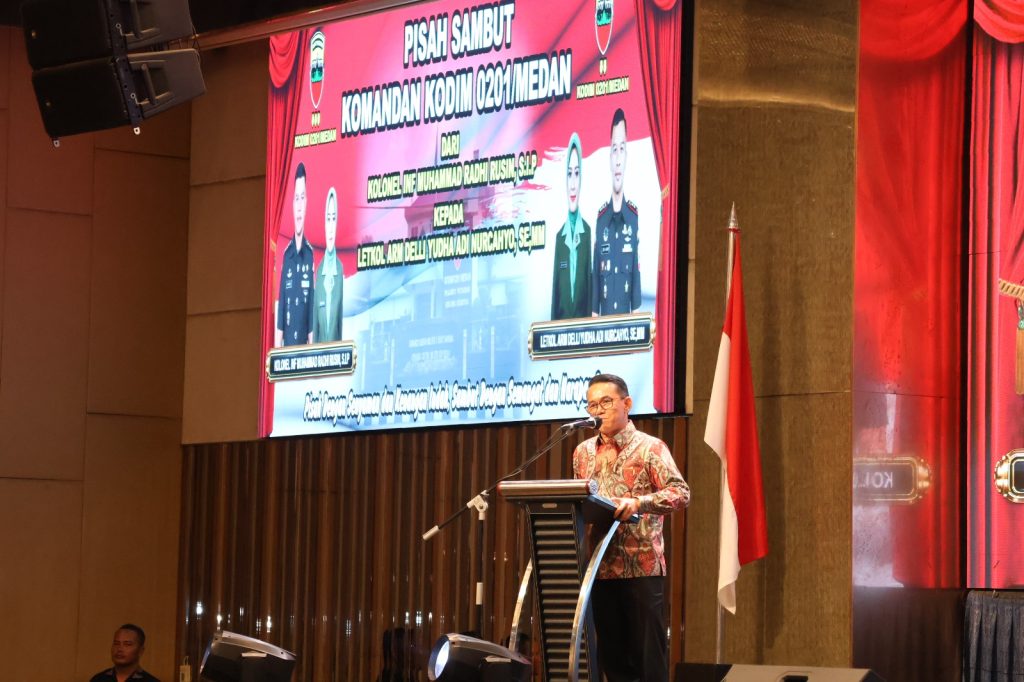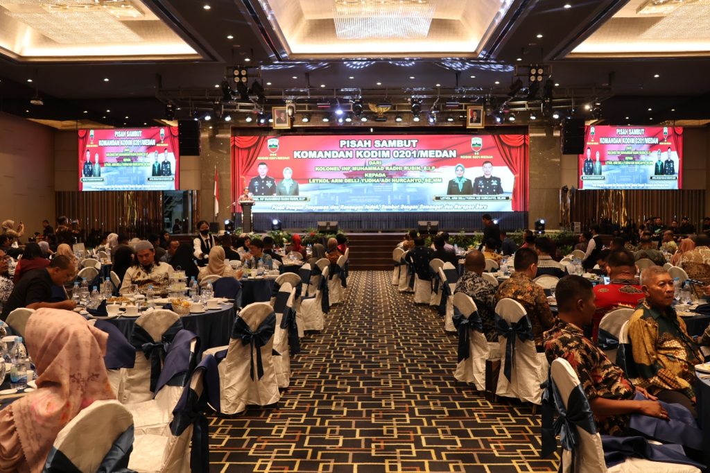Suasana hangat dan penuh kekeluargaan menyelimuti acara pisah sambut Komandan Kodim (Dandim) 0201/Medan yang berlangsung khidmat dan meriah. Kegiatan ini menjadi momentum penting dalam pergantian kepemimpinan dari Kolonel Inf Muhammad Radhi Rusin, S.I.P. kepada Letkol Arm Delli Yudha Adi Nurcahyo, SE., MM. Sejumlah tokoh penting dari unsur Forkopimda Kota Medan turut hadir, termasuk Wakil Wali Kota Medan serta berbagai elemen masyarakat dan institusi pendidikan.