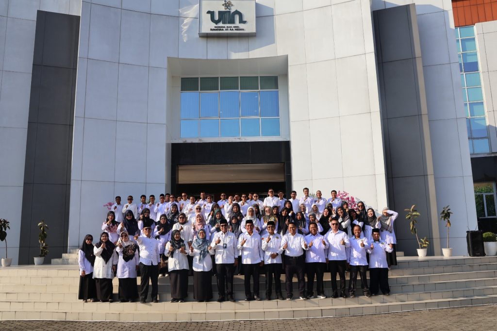 Sivitas akademika Universitas Islam Negeri Sumatera Utara (UINSU) Medan kembali melaksanakan rutinitas apel pagi di pelataran Kampus IV Tuntungan pada Senin, 27 April 2026. Kegiatan ini dihadiri langsung oleh Rektor UINSU, jajaran Wakil Rektor, Kepala Biro AUPK dan AAKK, para Dekan dan Wakil Dekan, hingga seluruh dosen dan tenaga kependidikan yang bertugas di lingkungan kampus tersebut. Bertindak sebagai pembina apel, Wakil Dekan I Fakultas Kesehatan Masyarakat (FKM), Prof. Dr. Hasrat Efendi Samosir, MA, menyampaikan pesan-pesan mendalam mengenai pentingnya spiritualitas kerja dan soliditas tim dalam memajukan institusi.