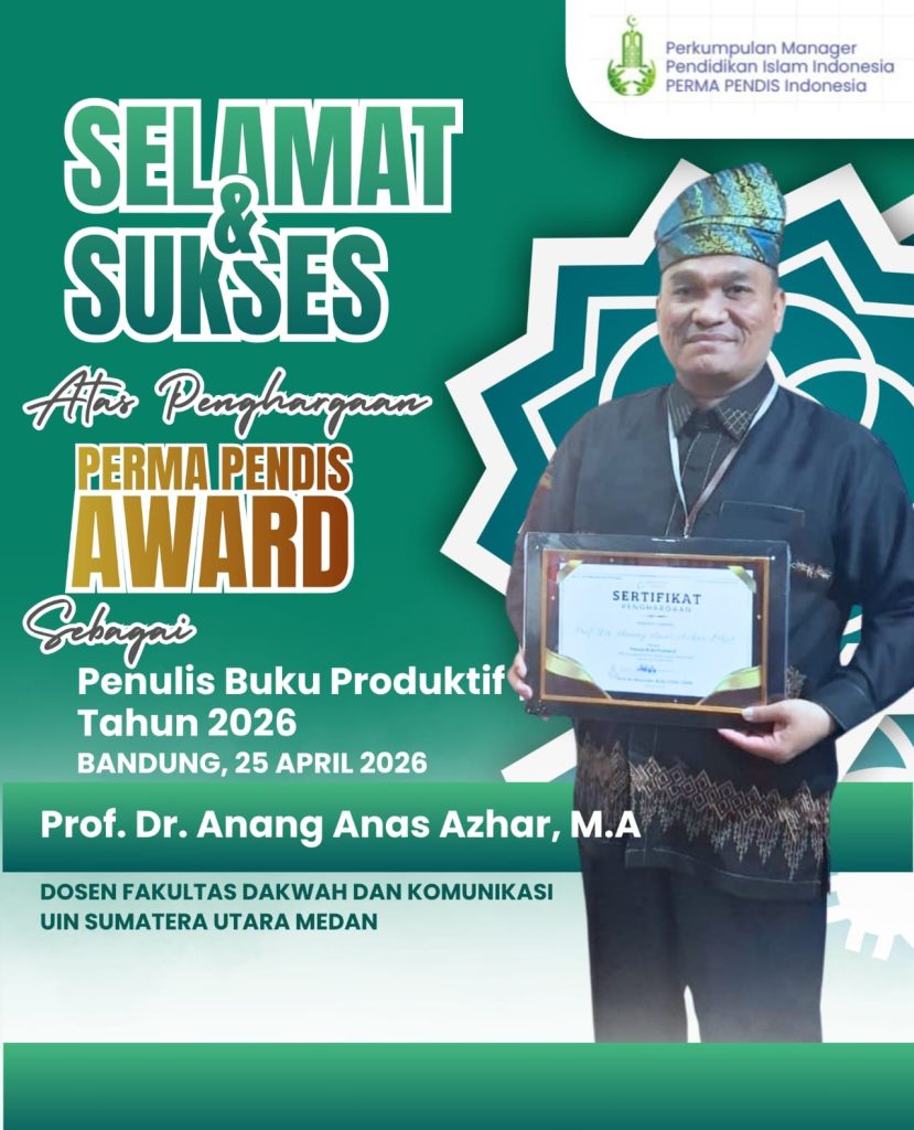 - Prof. Dr. Anang Anas Azhar, M.A., C.T. (Wakil Dekan III FDK UINSU), sebagai penerima Penghargaan Profesor Penulis Buku Produktif