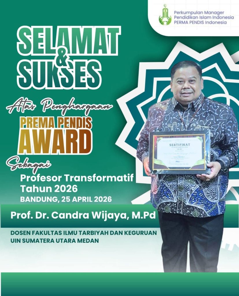 - Prof. Dr. Candra Wijaya, M.Pd., C.T. (Wakil Dekan I FITK UINSU), sebagai penerima Penghargaan Profesor Transformatif